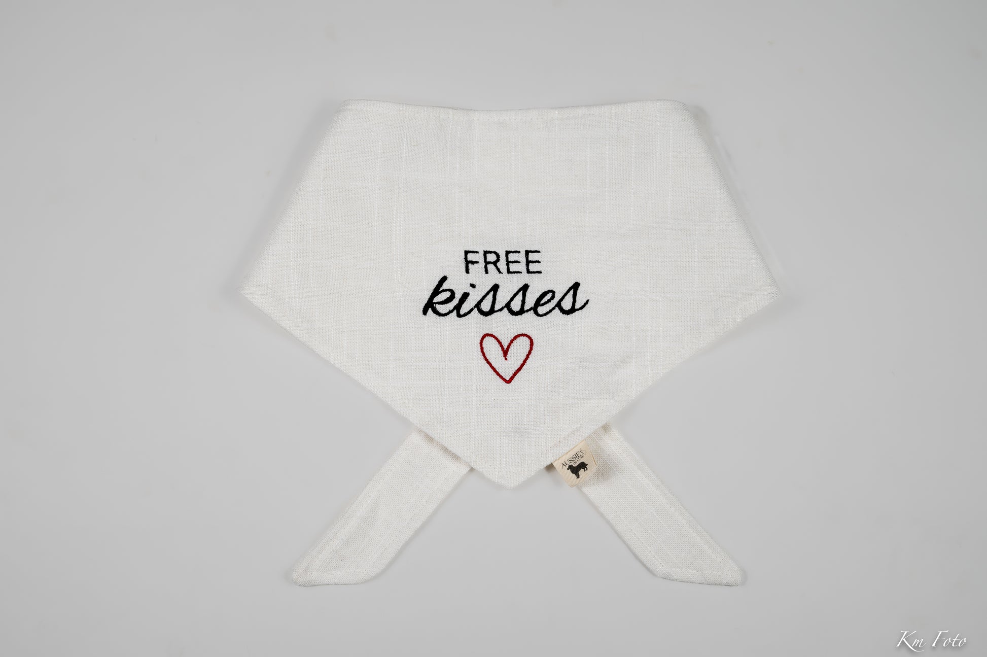 Free Kisses er en leken og sjarmerende bandana med brodert tekst og hjerte. Perfekt for hunden som deler ut susser hele tiden. Et uttrykksfullt design som sprer glede og passer like godt til hverdags som til spesielle anledninger.
