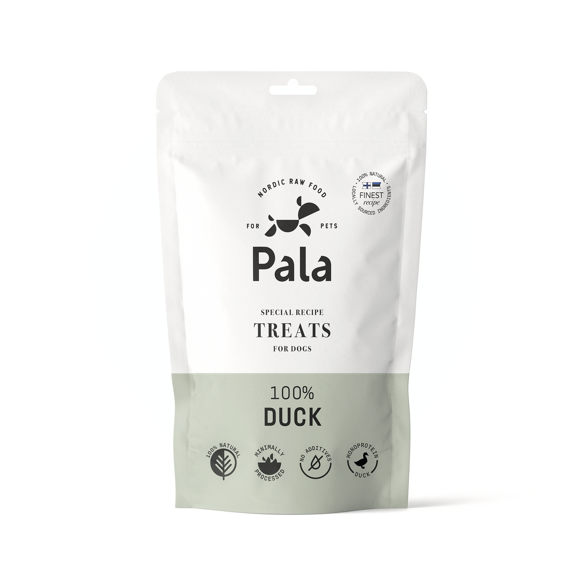 Disse godbitene fra Pala består av 100 % and, helt uten tilsetningsstoffer, konserveringsmidler eller kunstige ingredienser. Pala håndplukker råvarene sine basert på ernæringsmessig kvalitet og funksjon, og tørker dem deretter skånsomt ved lave temperaturer i små batcher. Dette bevarer både smak og næringsinnhold, og gir hunden din naturlige godbiter med svært høy kvalitet.