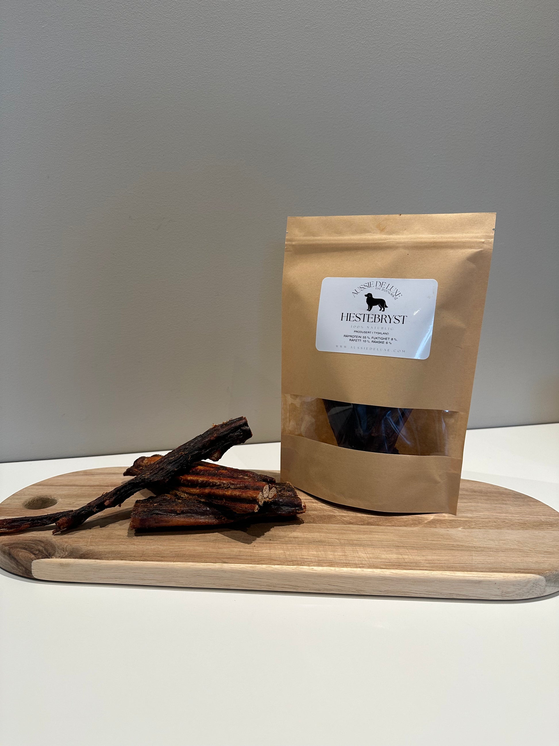 Hestebryst er et smakfullt og næringsrikt tygg, spesielt godt egnet for allergihunder og de med sensitiv mage. Med sitt moderate fettinnhold og faste konsistens gir det langvarig tyggeglede samtidig som det kan bidra til å styrke kjevemuskler og fremme god tannhelse.