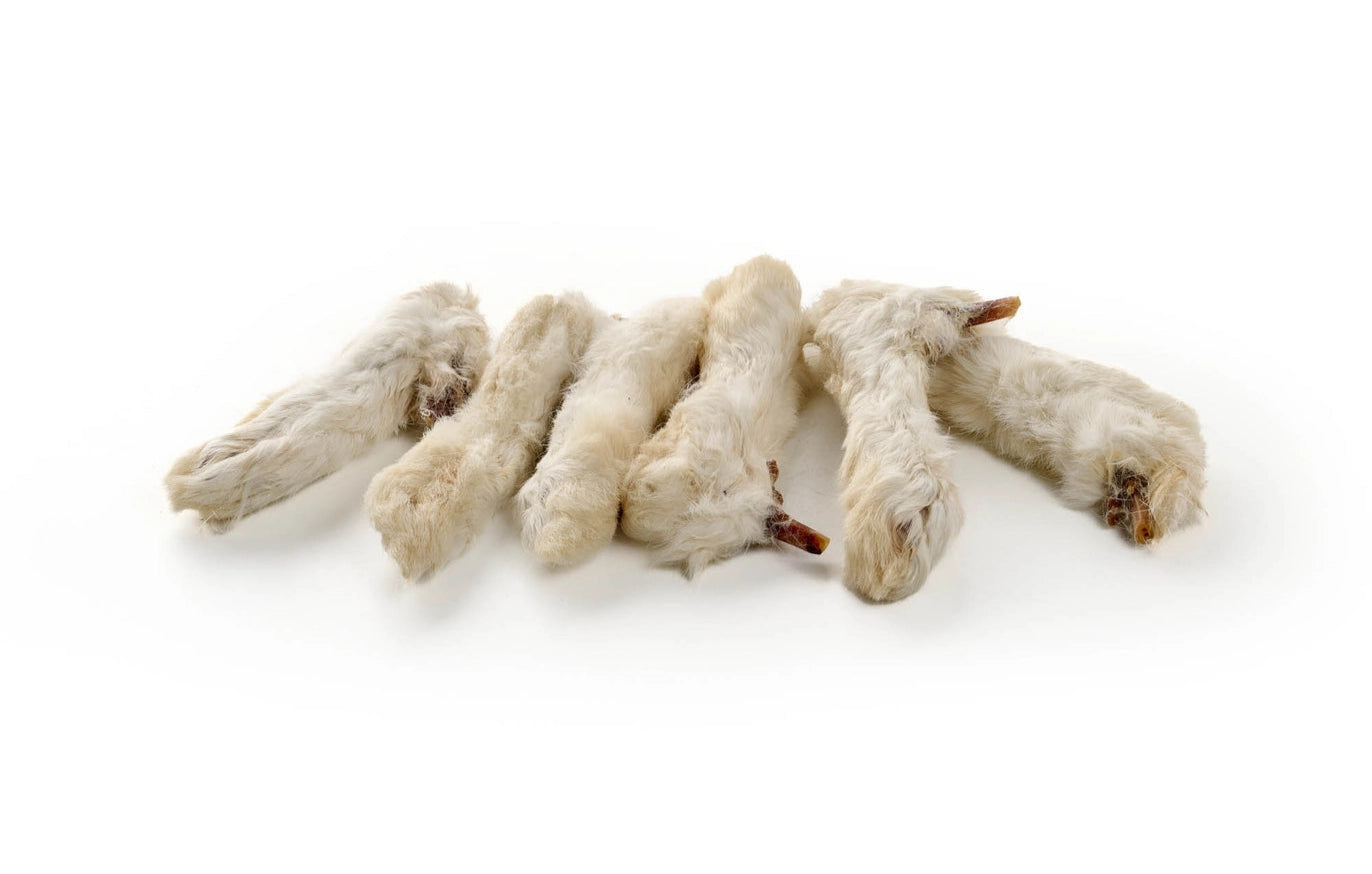 Tørkede kaninlabb med pels er en naturlig snack som gir hunden både tyggeglede og viktige næringsstoffer. Pels tilfører fiber som støtter fordøyelsen, mens beinene bidrar med kalsium, akkurat slik hunder i naturen ville spist byttedyr. Dette gjør kaninlabb til et helhetlig og instinktivt fôrtilskudd. Samtidig er de en skånsom og allergivennlig proteinkilde som passer godt for sensitive hunder.