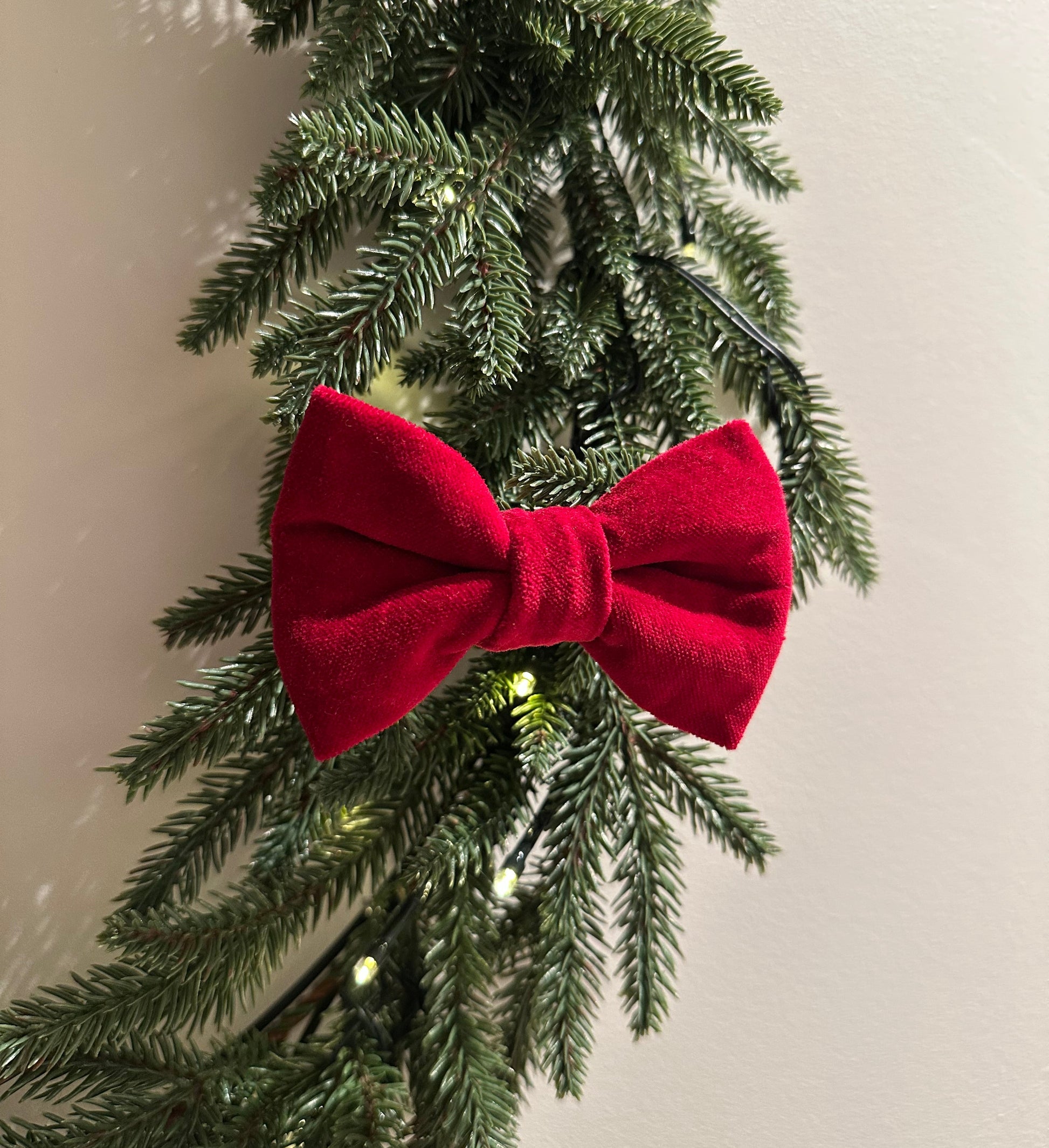 En vakker sløyfe med myk og delikat velvet-look. Den dype rødfargen kombinert med den fløyelsaktige strukturen skaper et varmt og elegant uttrykk som passer både til jul og andre høytidelige anledninger.