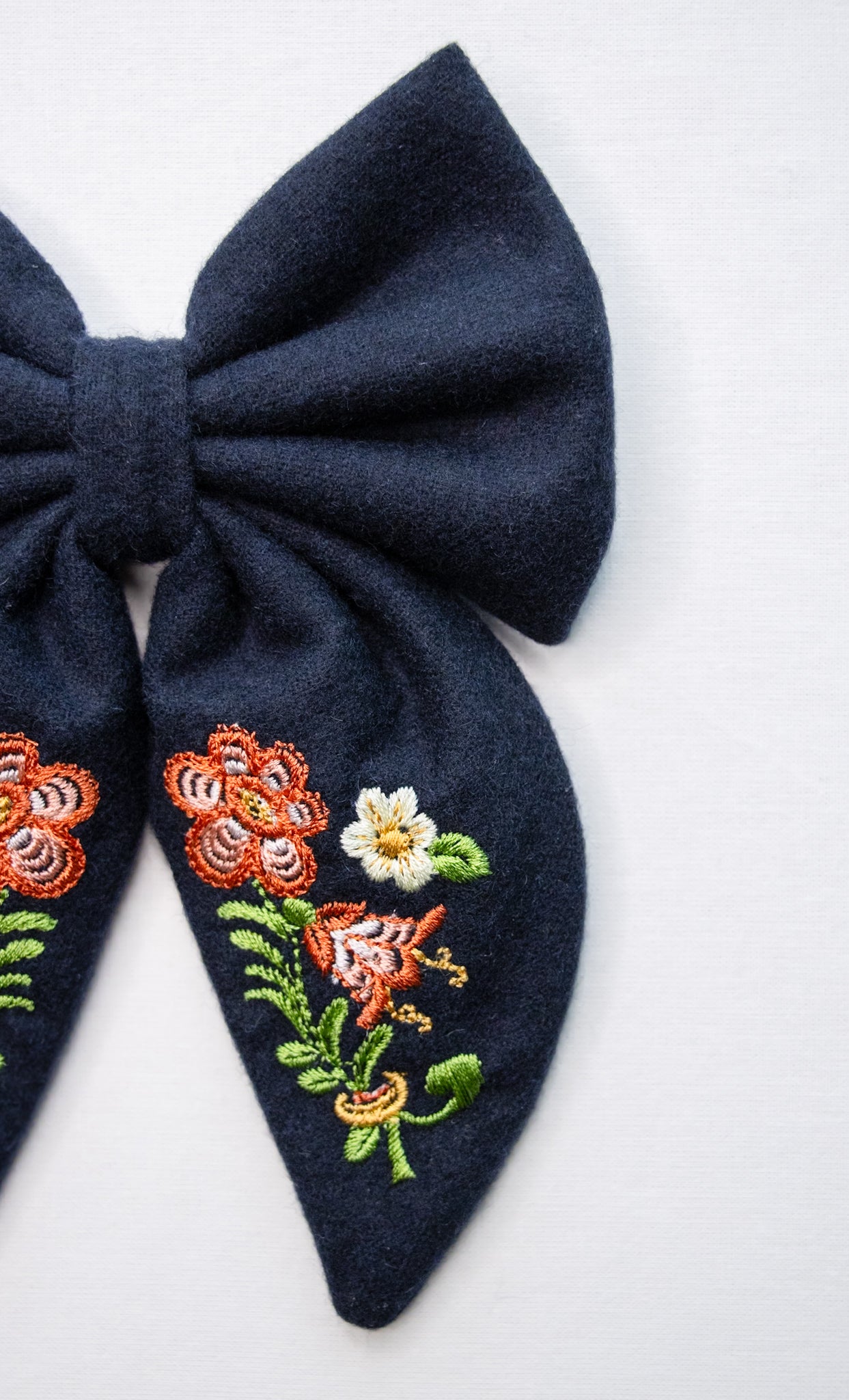 Sløyfen er håndlaget med fokus på kvalitet, komfort og passform. Den festes enkelt på halsbåndet og sitter stødig uten å være i veien for hunden.
