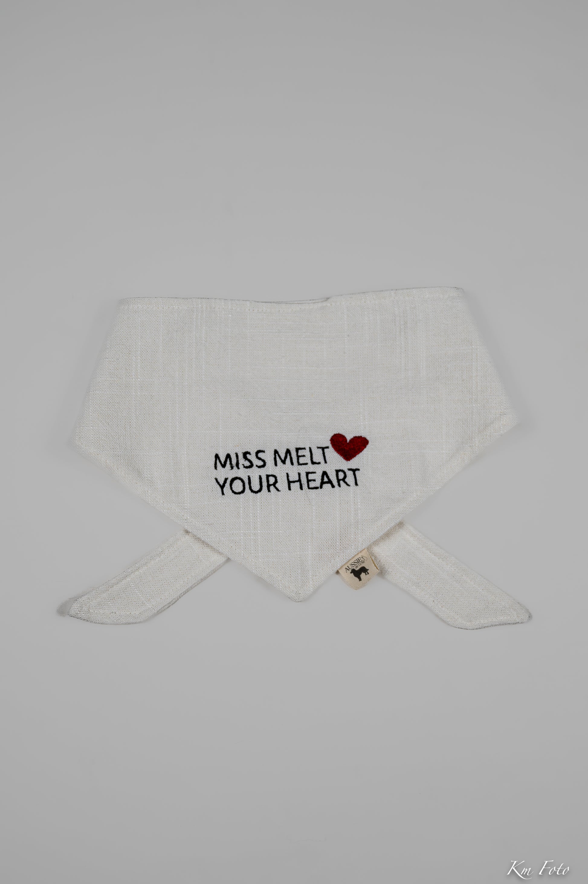 Miss Melt Your Heart er bandanaen for hunden som smelter hjerter med ett blikk. Et romantisk og tidløst Valentine-design med brodert tekst og hjerte. Like perfekt til spesielle anledninger som til hverdags.