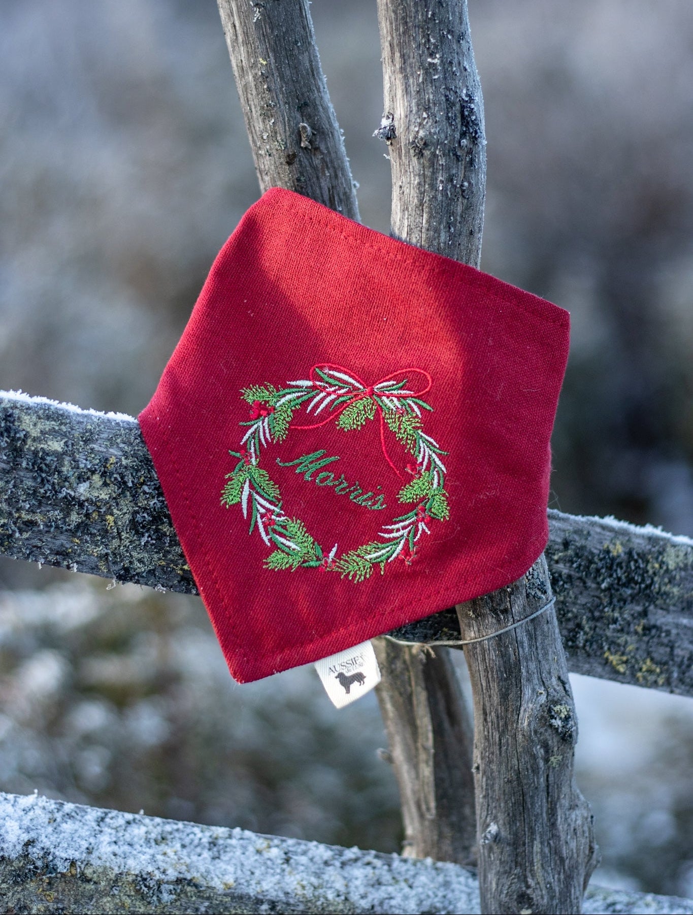 Julekrans er en vakker og personlig bandana som gir hunden et eksklusivt og nordisk preg i julen. Denne er perfekt til julebilder, julefeiring eller som gave til en hundeeier du ønsker å glede.