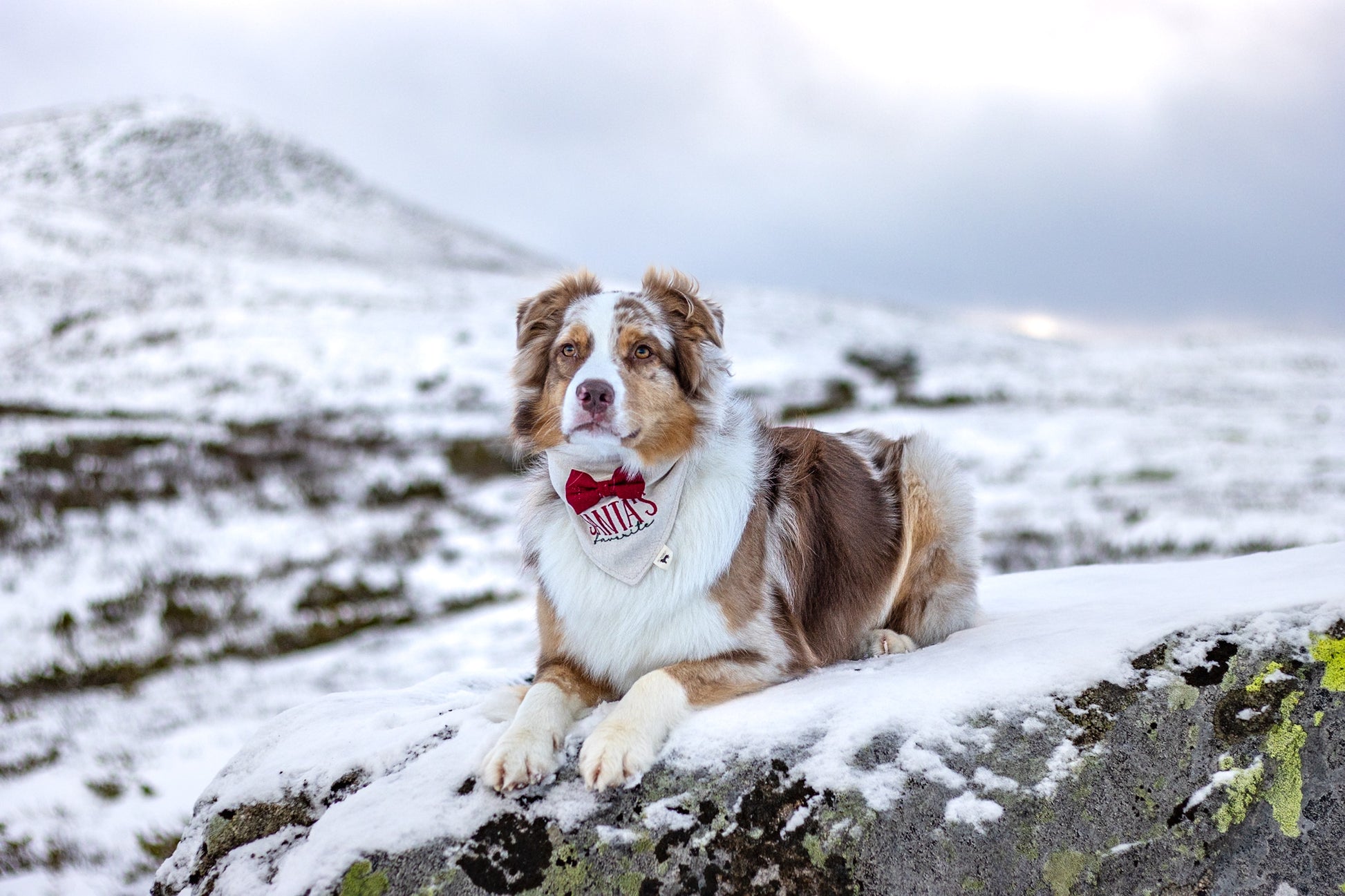 Santa's favorite er den perfekte bandanaen for skikkelig julestemning. Den kombinerer klassisk julestemning med et elegant uttrykk. Den røde sløyfen gir et mer eksklusivt preg, mens broderiet Santa's favorite gjør den sjarmerende og søt.