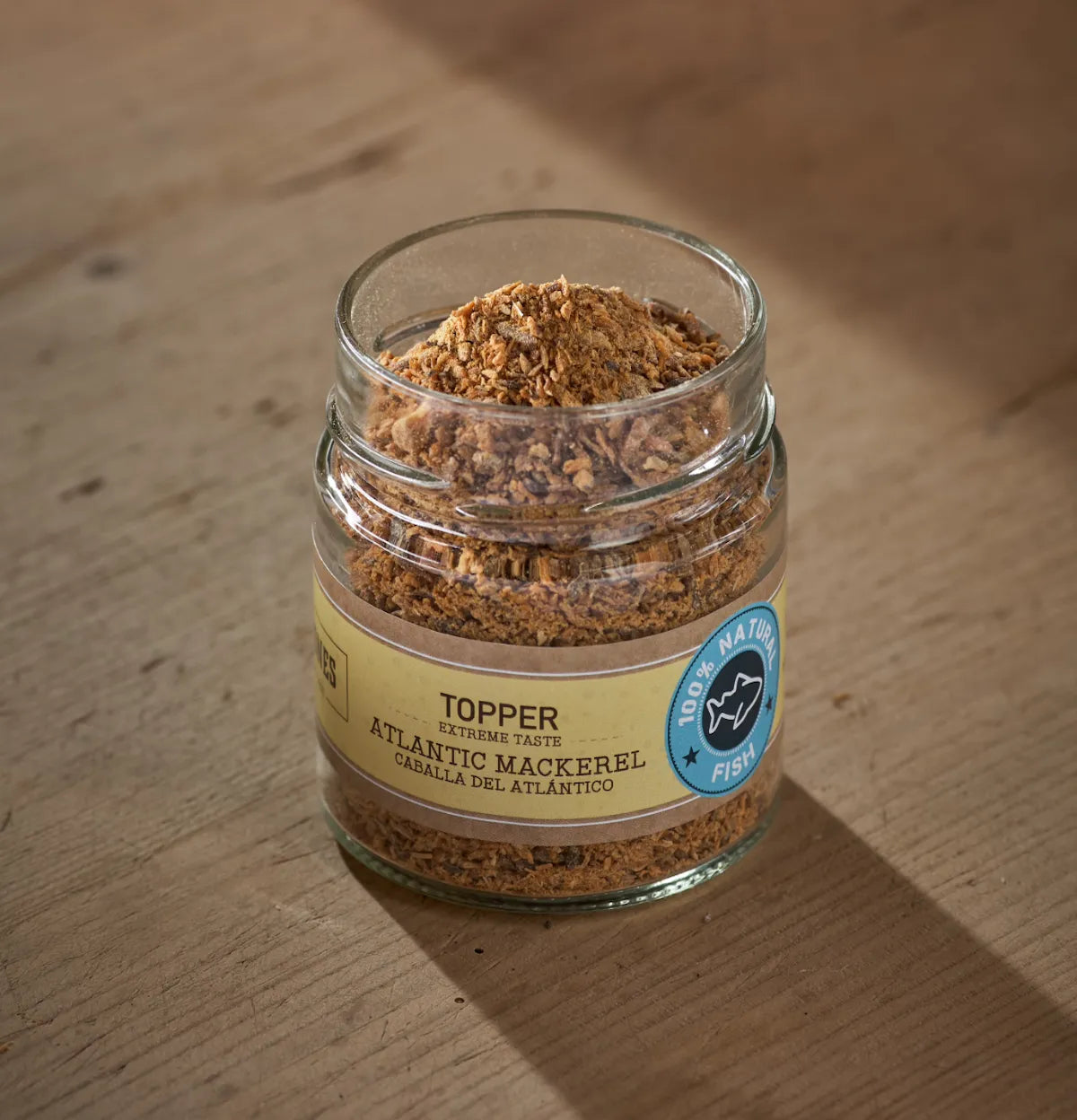Atlantisk makrell topper er et 100 % naturlig, og er egnet for både hunder og katter. Det blander seg lett med maten til den febeinte og gir et smakfullt løft som stimulerer appetitten og tilfører høykvalitets protein.