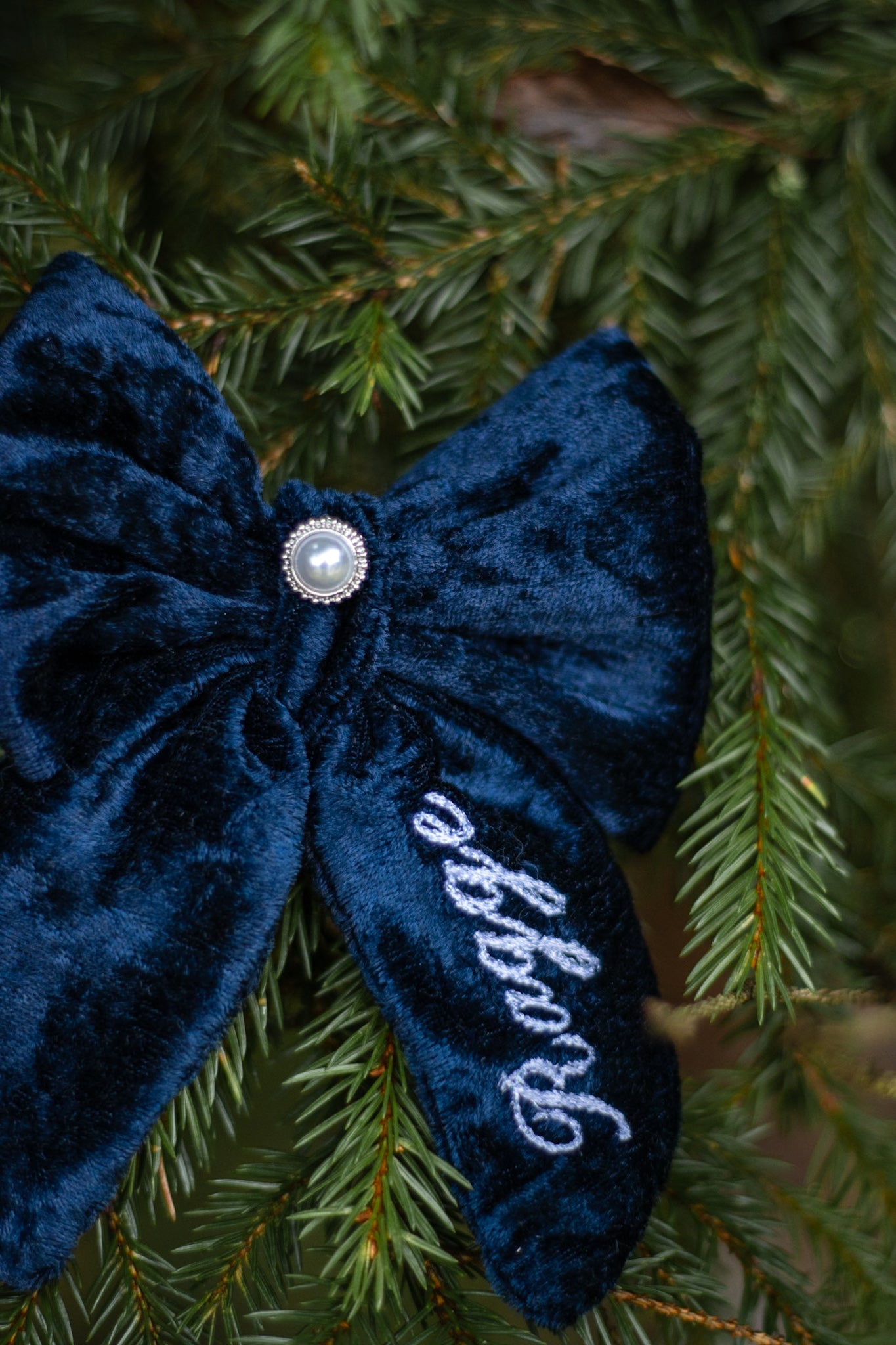 Dette er et stoff som gløder vakkert i lyset og gir et luksuriøst uttrykk til enhver anledning. Den delikate perledetaljen i midten gjør sløyfen til et lite smykke i seg selv.
