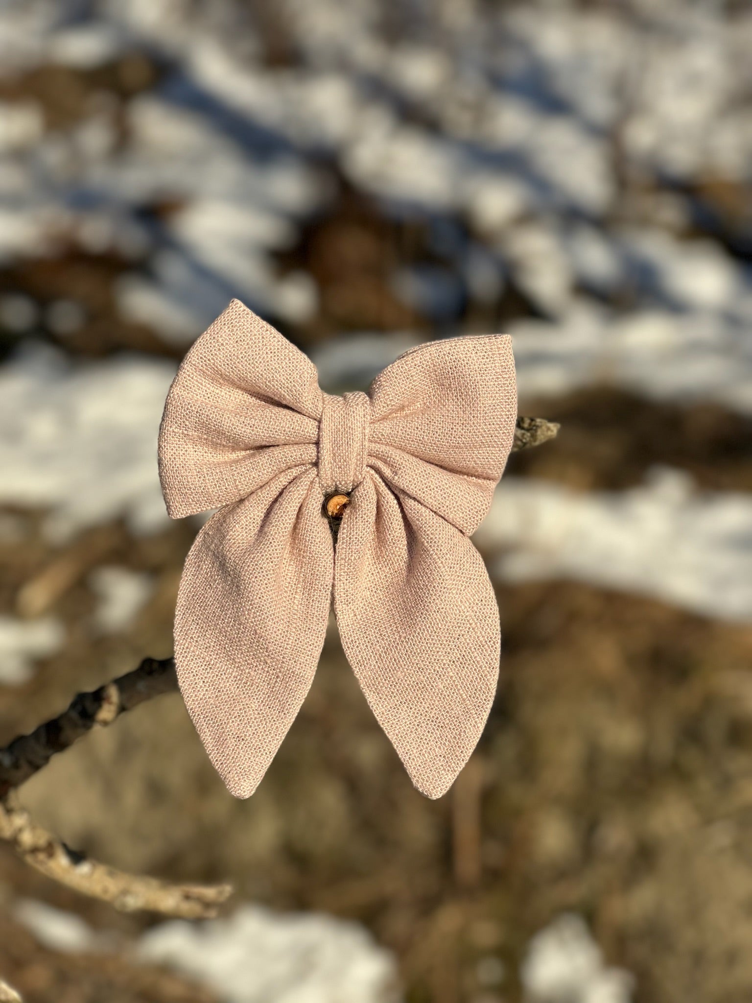 Pudder er en tidløs og elegant sløyfe i lin, i en dus rosatonet nyanse som gir et varmt og harmonisk uttrykk. Det enkle designet lar materialet og formen stå i fokus. Rolig, naturlig og gjennomført.